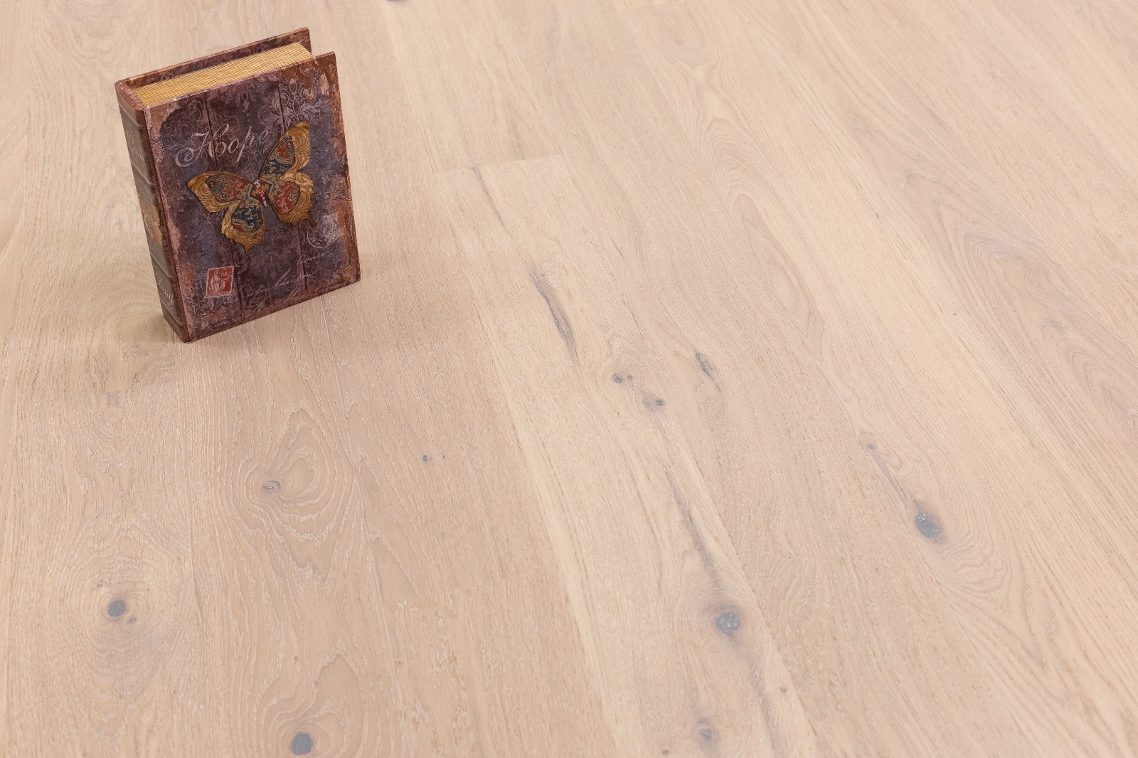 Шпон в коллекции "Сапфировый Взгляд" выпонен из дуба кантри толщиной 4 мм, а также средний слой из цельной ели толщиной 10 мм, на изделие нанесено покрытие в 5 слоев УФ лака для защиты от солнечных лучей, а так же нанесено 3 слоя масла, для защиты верхнего слоя от различных внешних воздействий и дефектов.